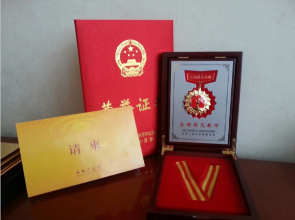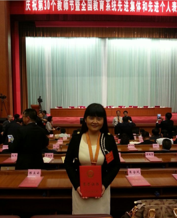 2014年9月被人社部、教育部评为全国模范教师、全国优秀班主任,受到习近平等党和国家领导人的亲切接见。